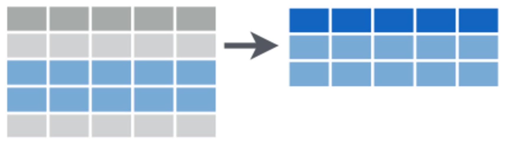 For example, if we wanted to select only data from the first three rows and all columns, we would use: