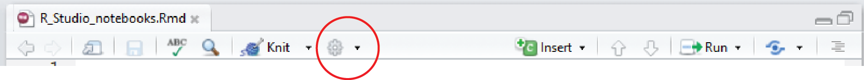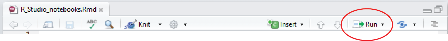 Executable code is added to your notebook in what are called chunks. To do this, click on Insert, R from the top right of your notebook (or use Ctrl + Alt + I on the keyboard). This will add an empty chunk that looks like this: