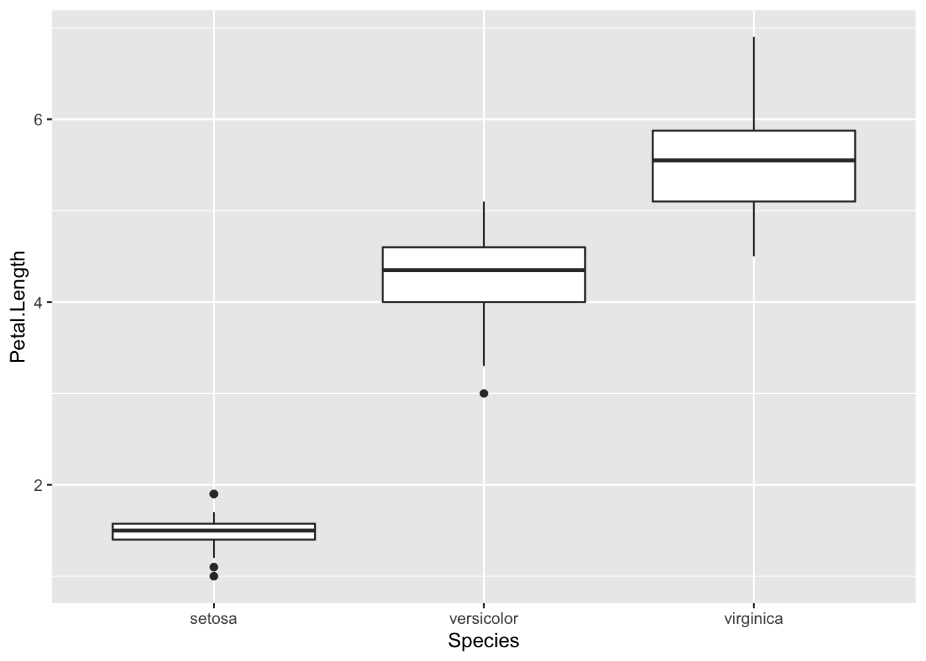 plot1 <- ggplot(iris, aes(Species, Petal.Length)) +