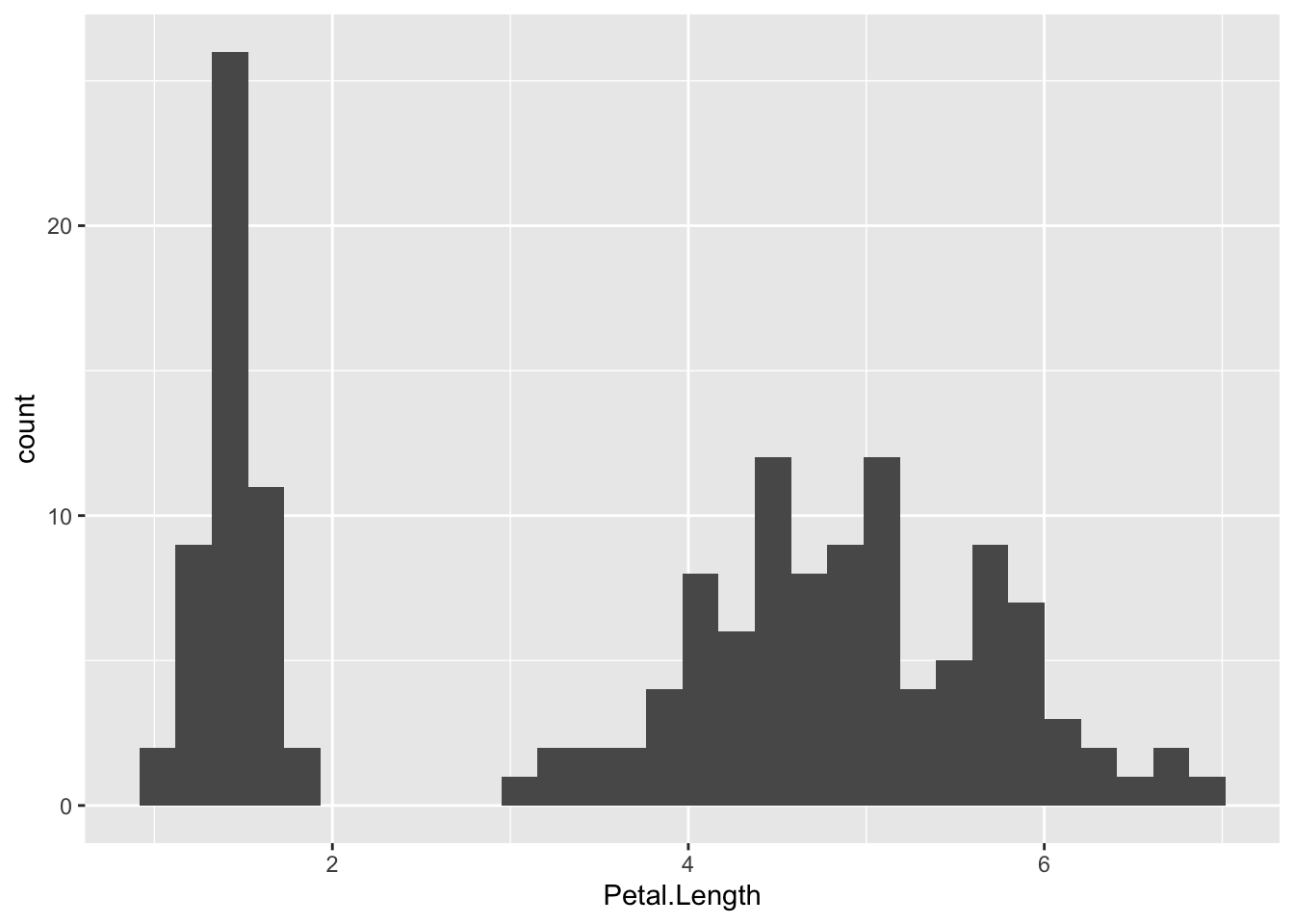 plot2 <- ggplot(iris, aes(Petal.Length)) +