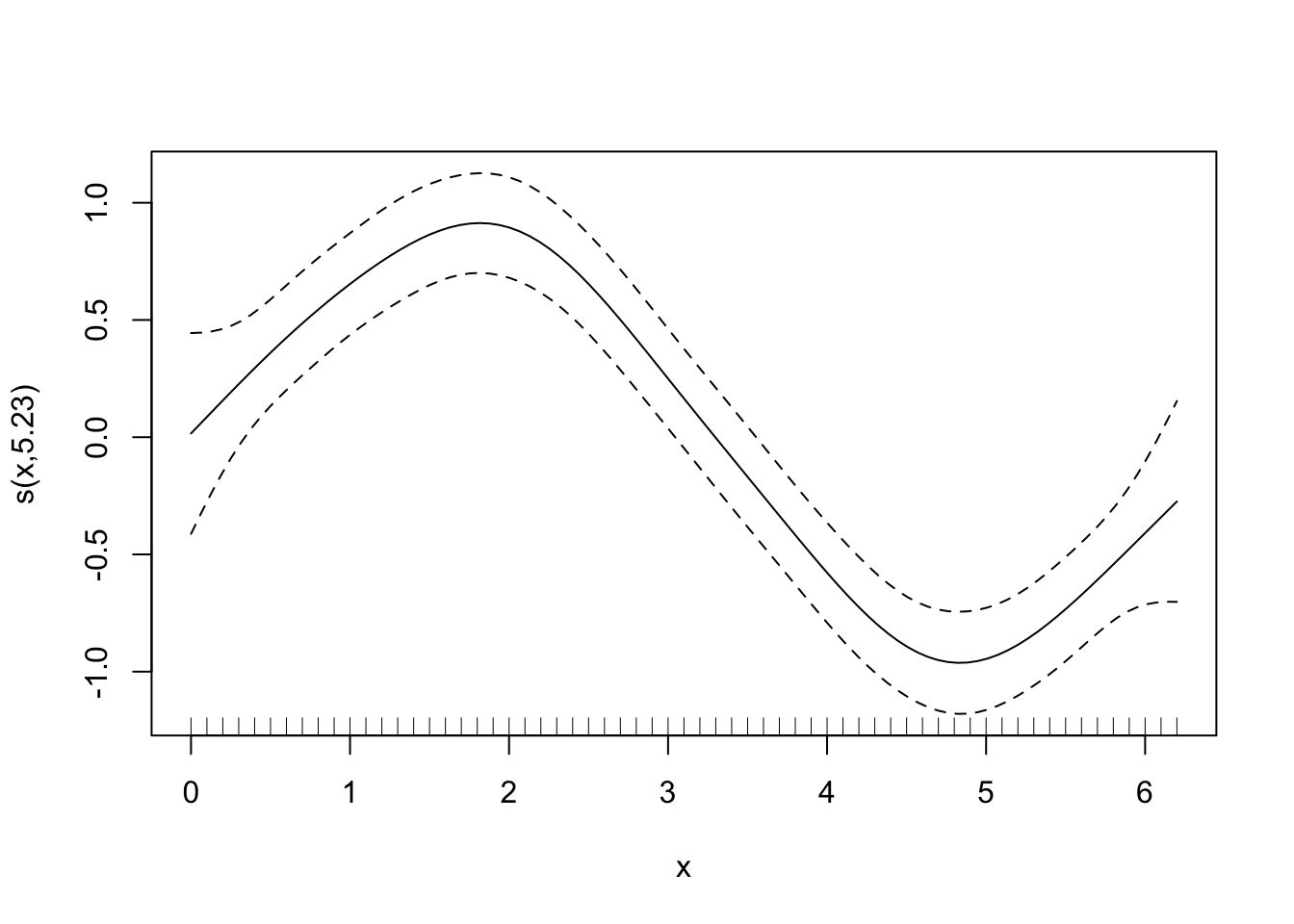 lines(x, model_matrix[, "s(x).2"], type = "l", lty = 2)